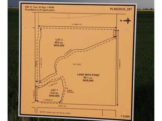 Just 30 minutes to Calgary, what a great holding property borderiing the 2A hwy on the front side and overlooking a large pond out the back. Perfect for a walkout basement in your Country Dream Home. Services border property with access from Township Road 304. Not enough land well there are 2 more parcels off of the balance of this quarter. 49.79 acres off to the East side with access from Township Road 304 for $650,000. Or 90.16 acres with the pond on it rolling terrain and over 560 meters of Hwy frontage for $850,000. These properties would be a great investment as a holding property or just enjoy it as a Commuters Country getaway. Just the place to give you some space.